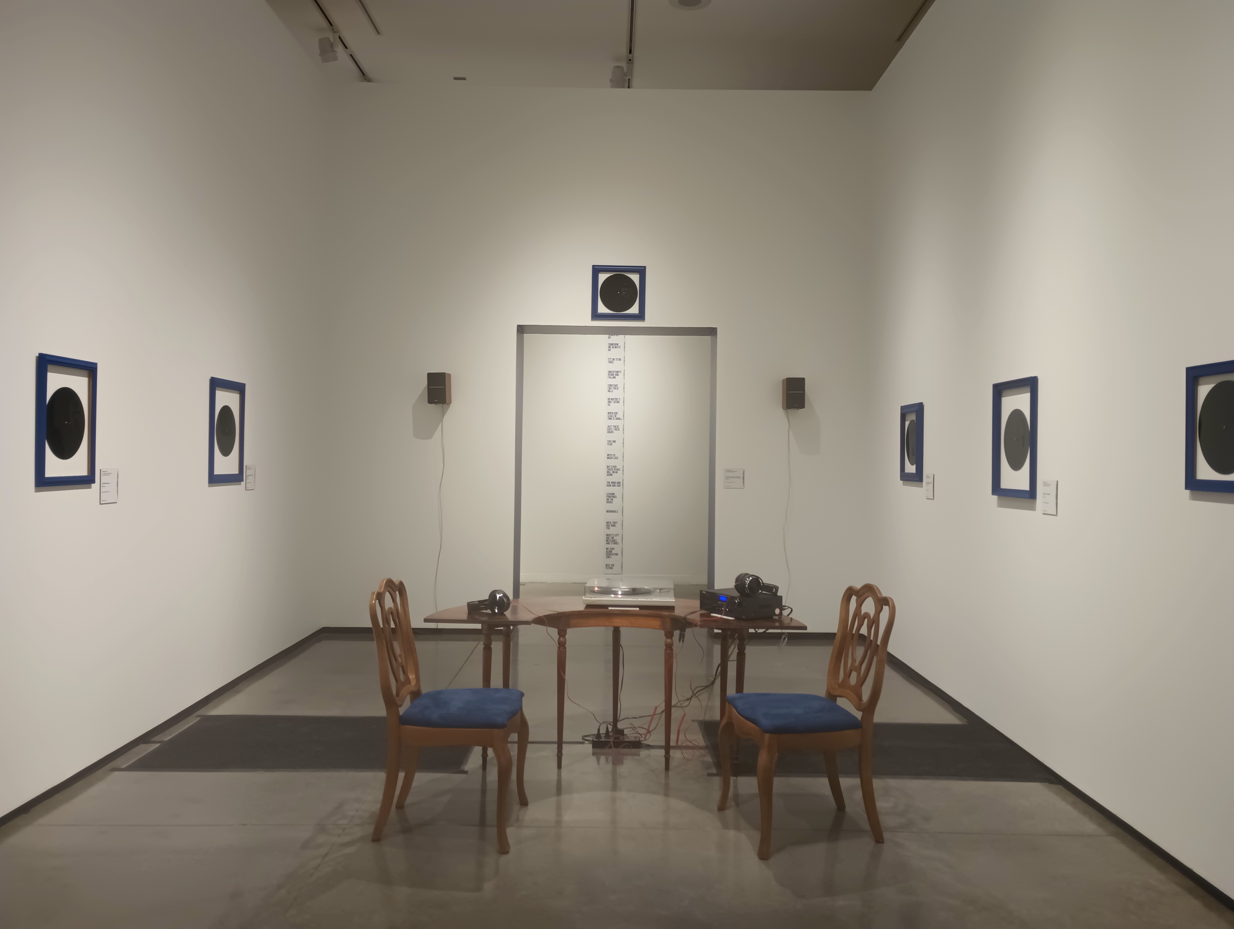 21 of the records are an audio composition (representing hardship) created and recorded by Marisa Demarco. All 21 compositions are titled to create a poem written by Demarco. All records are played at once, over the 72 hr time period the compositions erode and eventually the only audio playing is the family interview record. This auditory process is representational of one family’s perseverance and resilience.